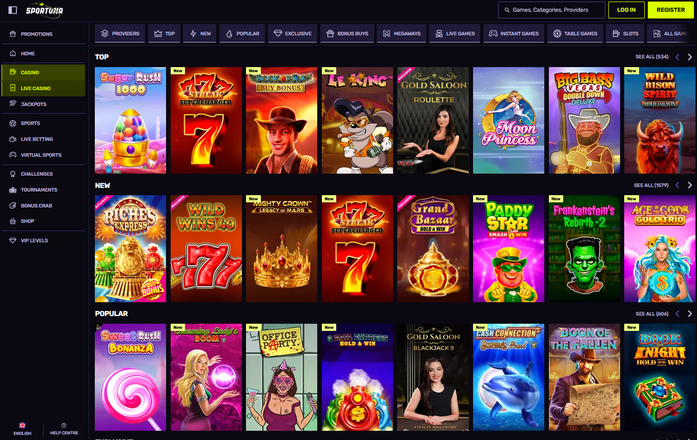Sportuna的真人娱乐场部分是其亮点之一,由Evolution Gaming、Pragmatic Play Live和其他顶级供应商提供支持。这个板块提供了超过231款真人游戏,为玩家带来真实的娱乐场氛围。